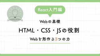 React学習ガイド HTML・CSS・JavaScriptの役割 〜Webを形作る3つの力〜 まずは基本中の基本である「Webページの3要素」の役割を整理します。これら3つを理解する際、よく「人間」に例えて説明され... 2026.03.03 React学習ガイド